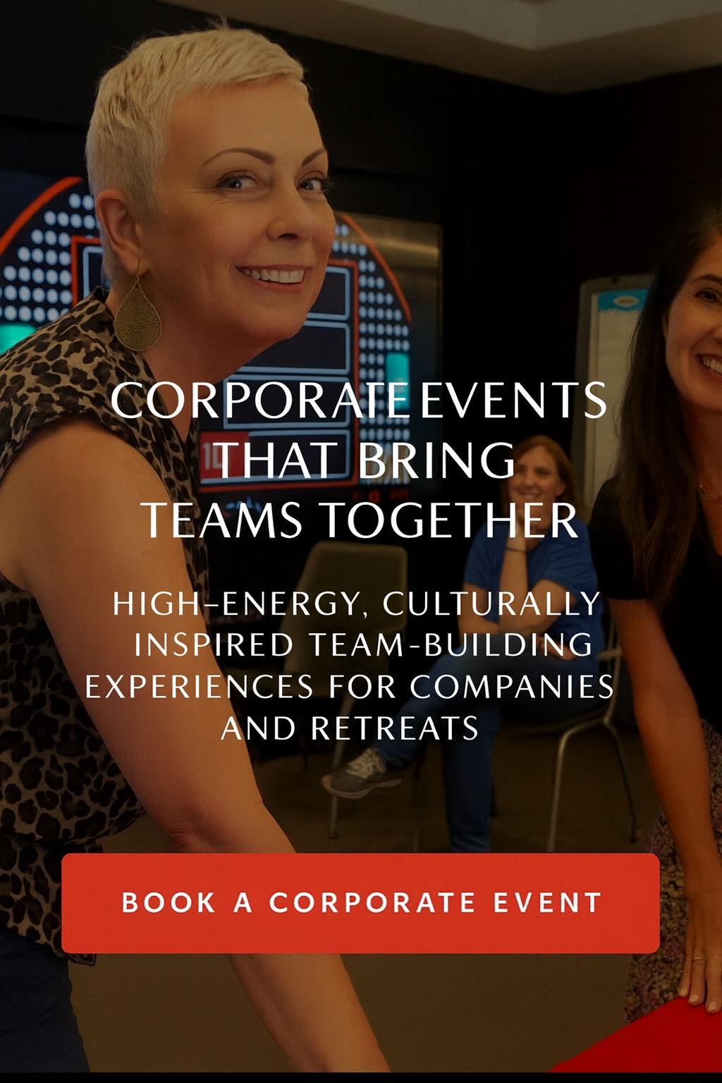 We create high-energy, culturally inspired team-building events that bring people together. From live game-show experiences to interactive workshops, we help companies boost connection, morale, and engagement through play.